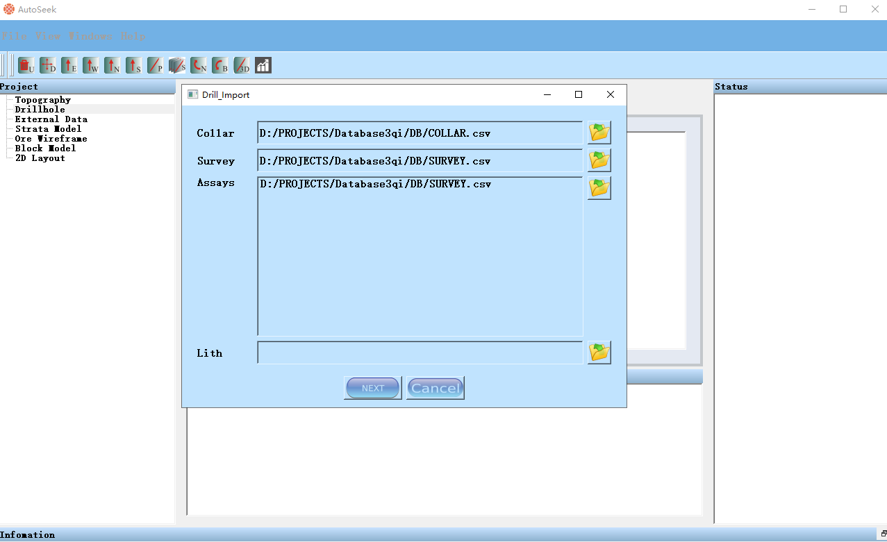 AutoSeek软件,是本公司针对当前隐形建模软件由少数国外公司垄断、传统地质专业软件建模操作繁琐、数据无法互通、更新效率低下等问题,通过对地质特征进行提取分析、利用数学模型应用、三维虚拟呈现等技术研发的一款集矿产数据库检查、统计分析、智能地质建模为一体的地质矿产核心技术软件。