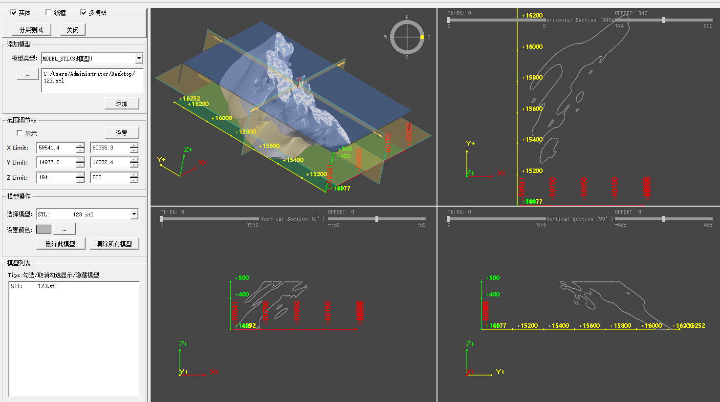 用户可以在平面或剖面上输入矿体产状信息和基本的工程分布网度,还可以设定虚拟钻孔。根据产状和网度信息,我们的软件能够自动完成对空间矿体的圈定,形成准确的实体模型。这一流程简单便捷,帮助用户快速生成精确的矿体模型。